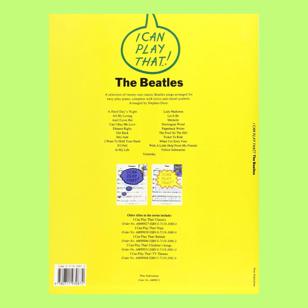 With its clear notation and easy-to-follow instructions, I Can Play That The Beatles is designed to help aspiring musicians achieve an authentic rendition of these beloved classics. Whether you're a beginner or an experienced player, this music book provides a valuable resource for learning and mastering The Beatles' timeless music.