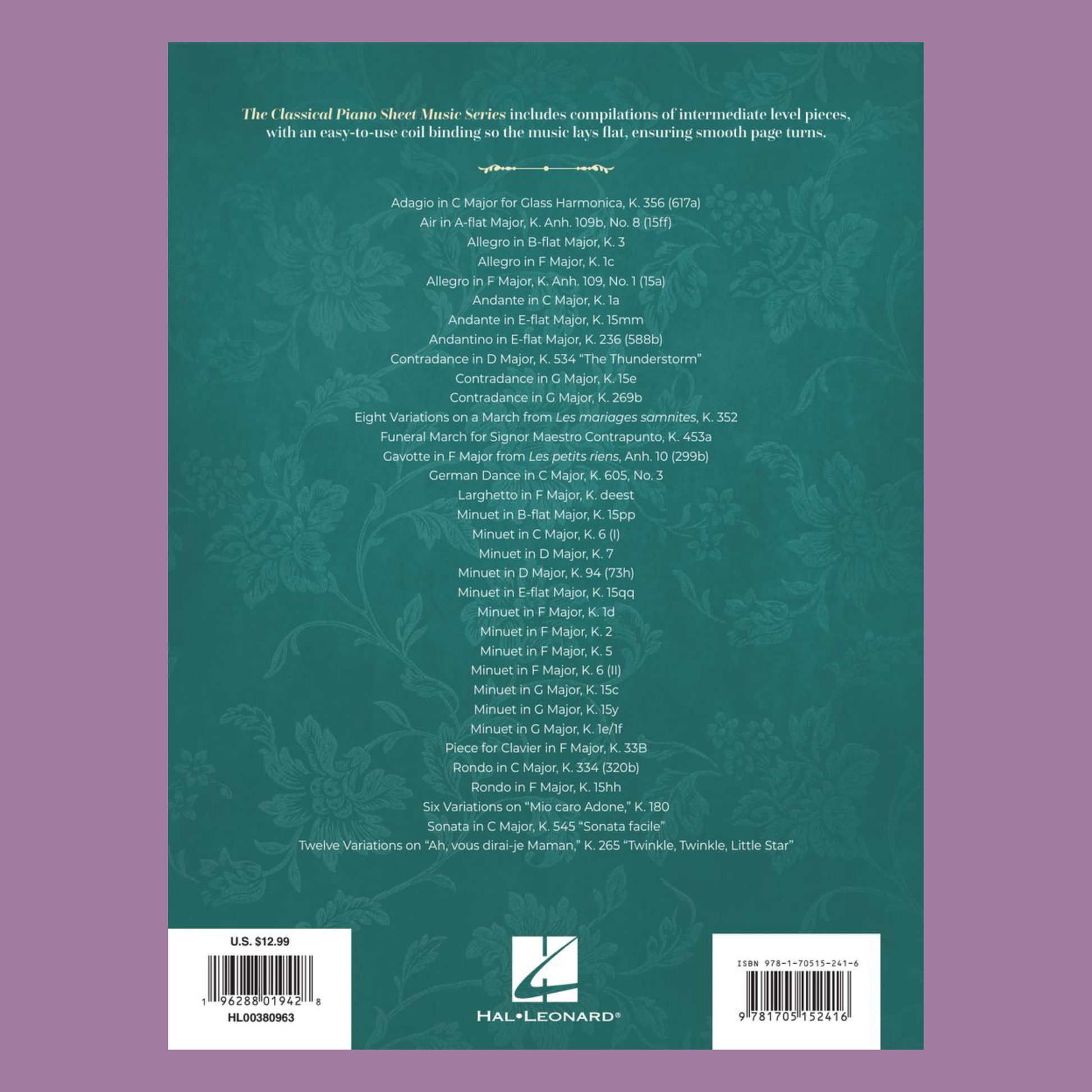 The Classical Piano Sheet Music Series includes compilations of intermediate level pieces, with an easy-to-use coil binding so the music lays flat, ensuring smooth page turns. 88 pages.