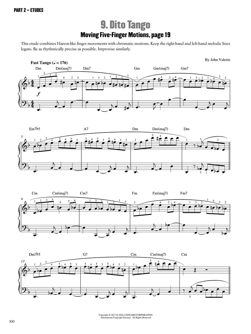 1. Tailored Technique Exercises: The book covers a variety of technical aspects relevant to jazz piano, such as scales (major, minor, chromatic, pentatonic, etc.), arpeggios (triads, seventh chords, upper structures), and finger independence exercises. Each exercise is designed to address specific challenges faced by jazz musicians.