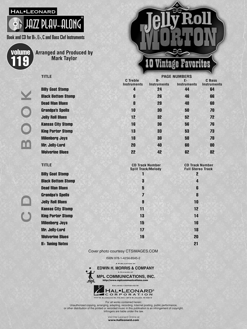 Jelly Roll Morton - Play Along Volume 119 Book/Cd   📚📀