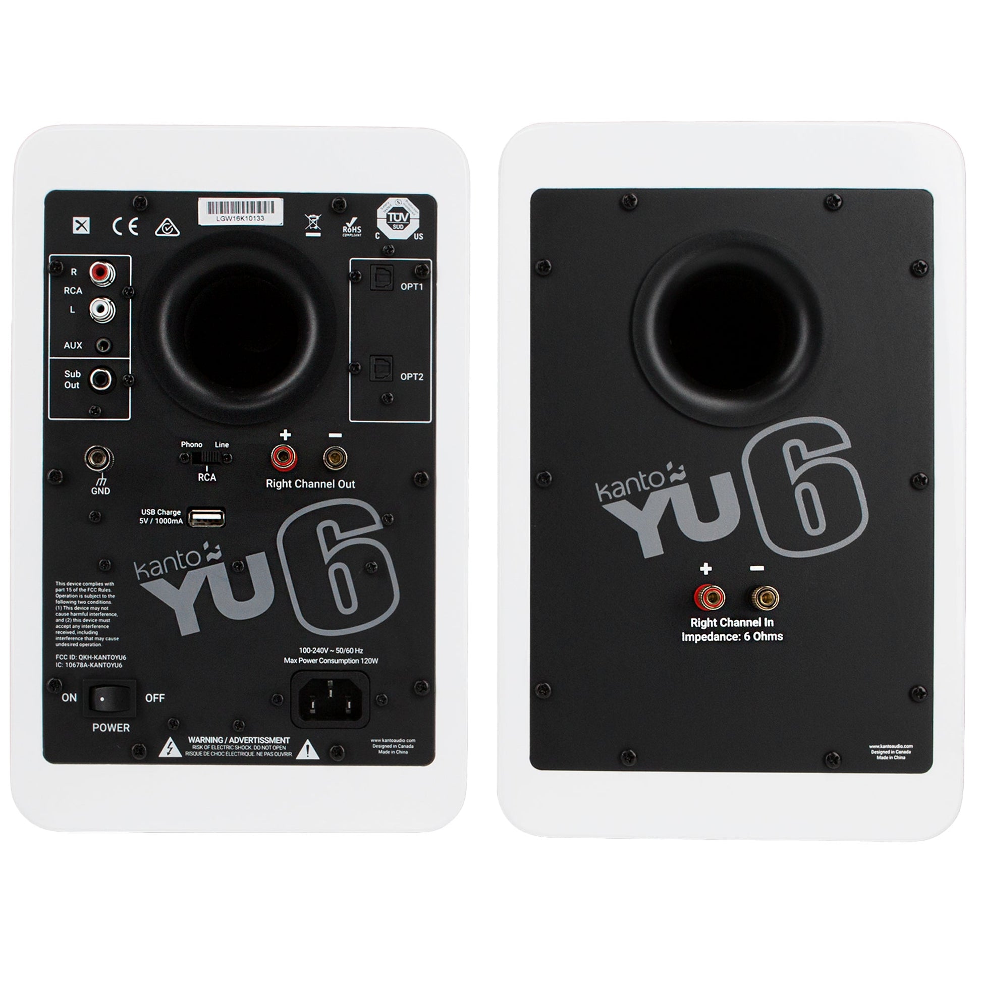 Kanto YU6 200W Powered Bookshelf Speakers with Bluetooth® and Phono Preamp - Pair, Matte White - Undeniably loud. Satisfy your craving for powerful, full-impact sound with YU6. Armed with a formidable Class D amplifier pumping out 200W peak power, YU6 will have you questioning what it really means to be loud. Its 5.25” Kevlar® drivers and 1” silk dome tweeters inject detailed sound into every square inch of living space, evoking emotions that can only be expressed with an ear-to-ear grin. A built-in phono preamp makes it easy to spin your favourite tunes, while Bluetooth® connectivity lets you keep the party going from the palm of your hand.