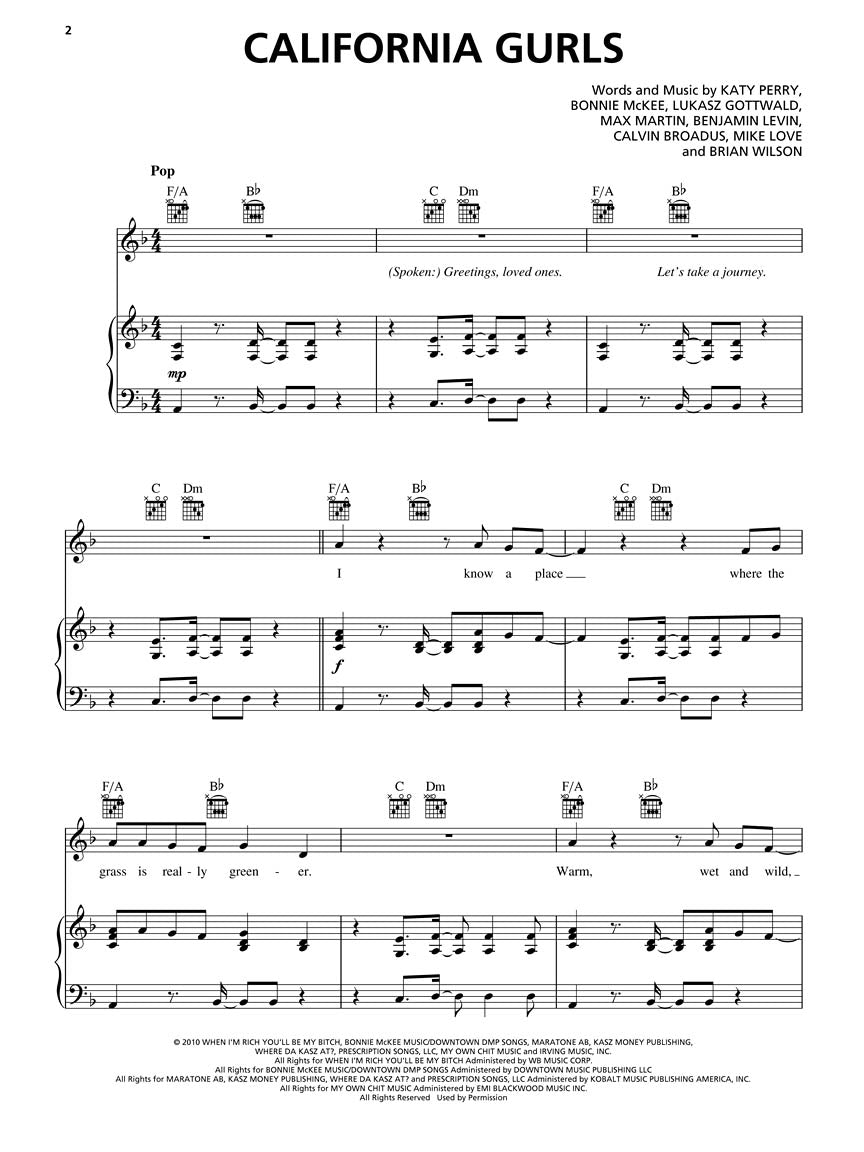 Bring your favourite Katy Perry songs to life with the innovative Piano Play-Along series. This book/CD collection allows piano and keyboard players to practice and perform with professional-sounding accompaniments. Featuring eight top hits from Katy Perry, the book includes new engravings with a separate vocal staff and guitar frames, so you and your friends can sing or strum along.