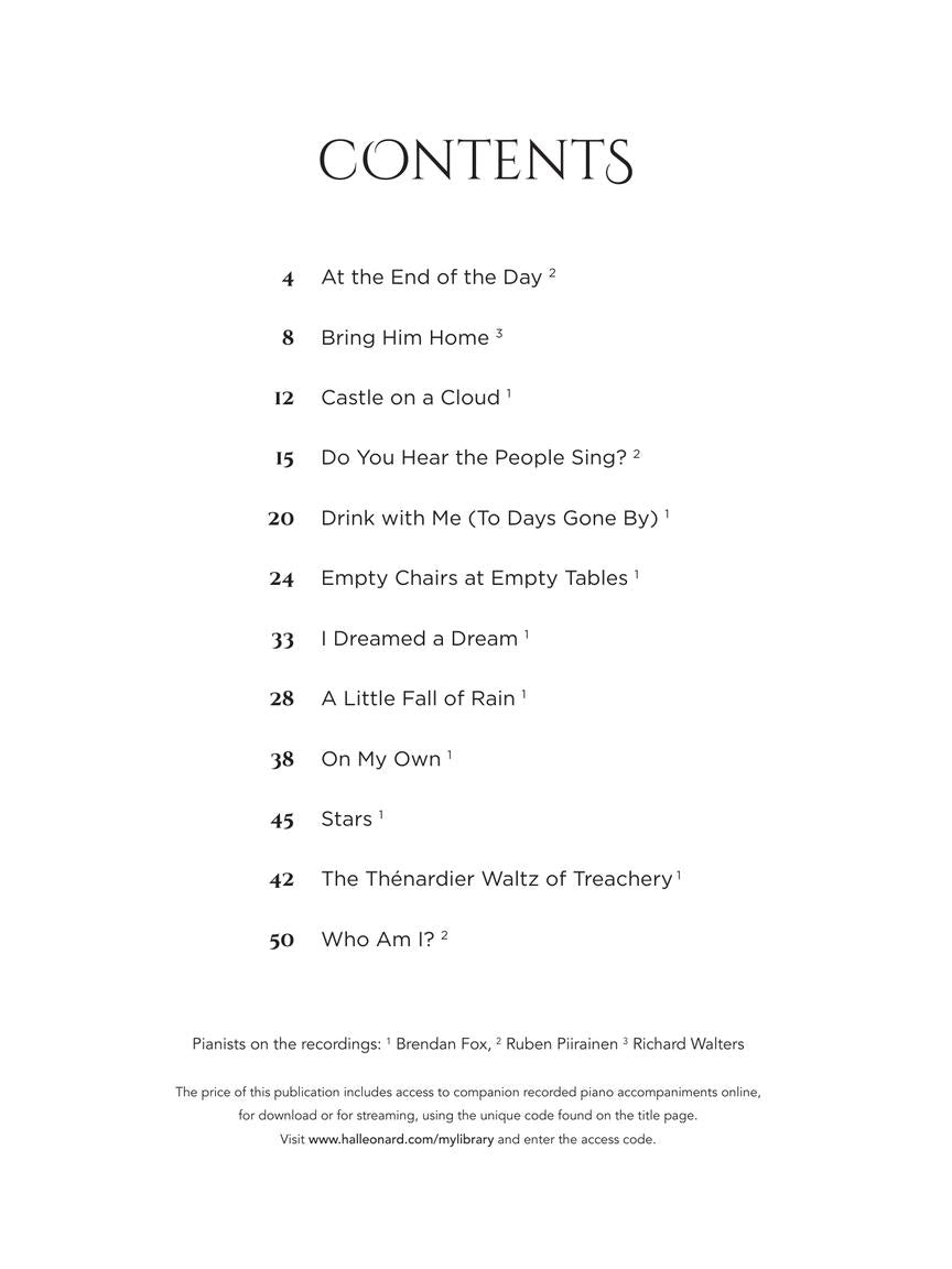 This collection features 12 iconic songs from Les Miserables arranged for violin with piano accompaniment. Professionally recorded piano accompaniments are available for download or streaming, making it perfect for solo instrumentalists. 56 pages.