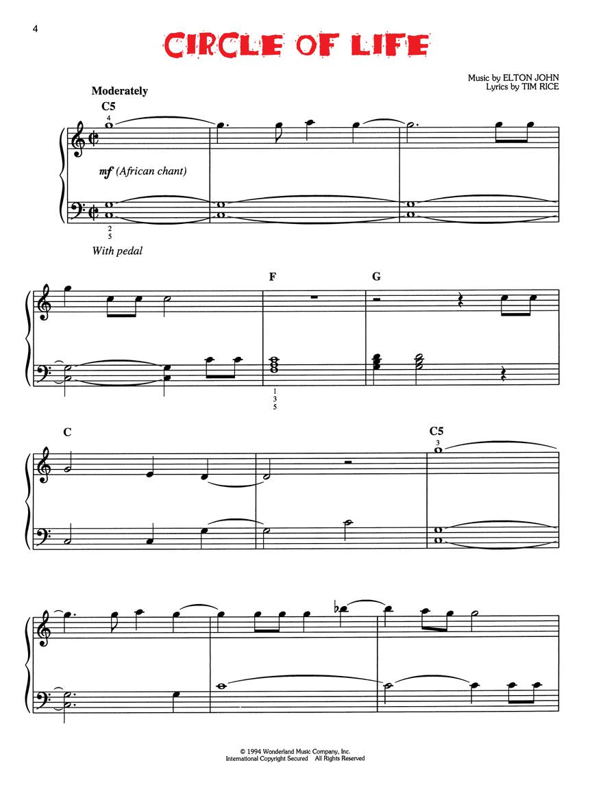 The Lion King Vocal Selections Easy Piano Book