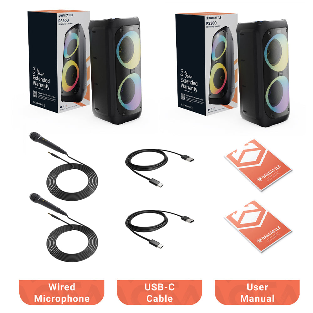 Grab the included wired microphone and unleash your inner rock star — perfect for karaoke nights, outdoor events, or backyard celebrations. Compact, portable, and loaded with features, the PS200 isn’t just a speaker — it’s the life of the party.