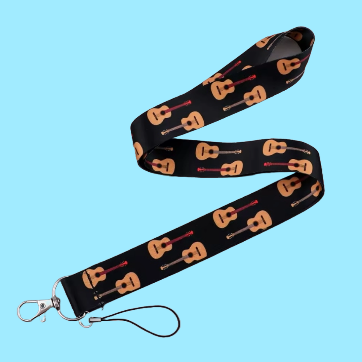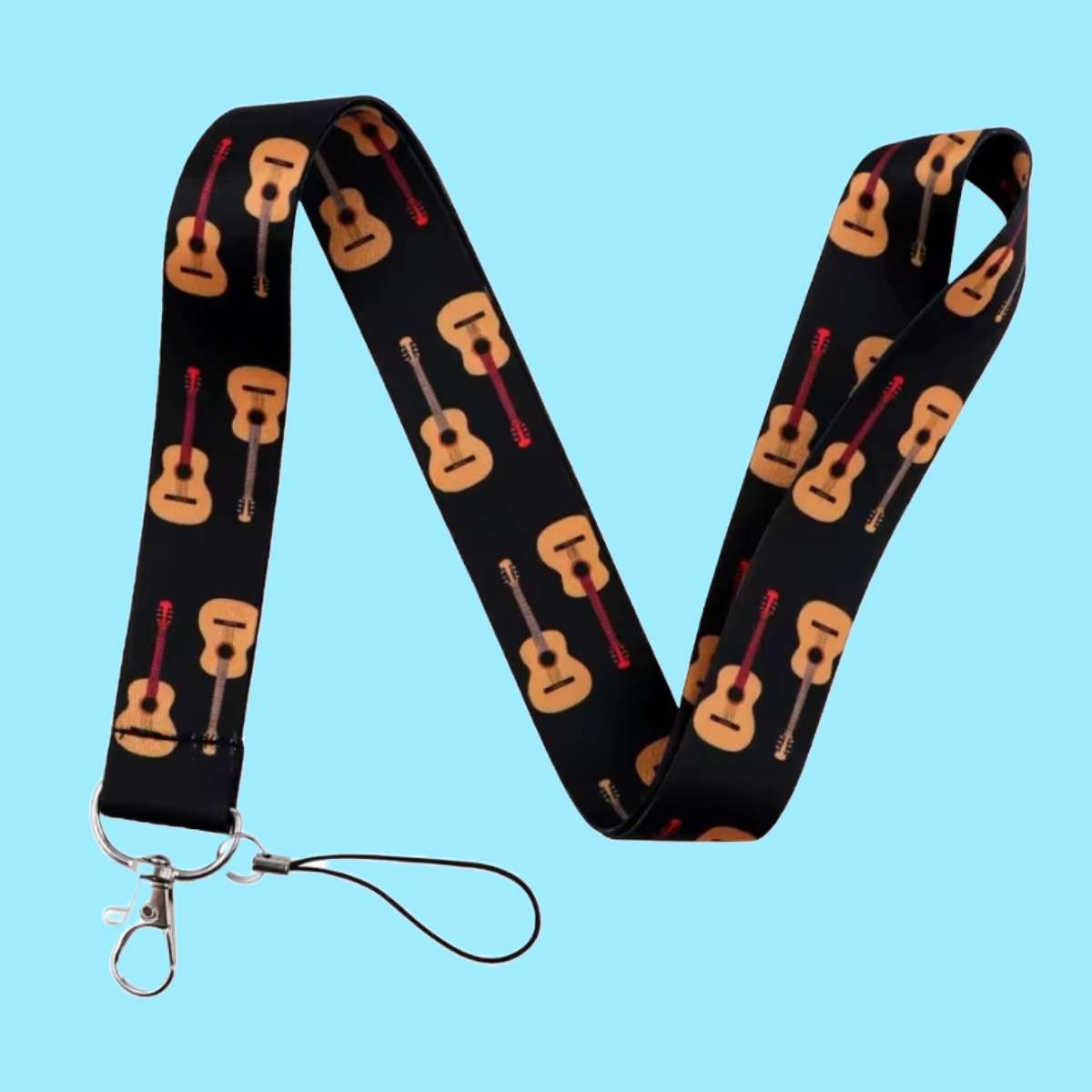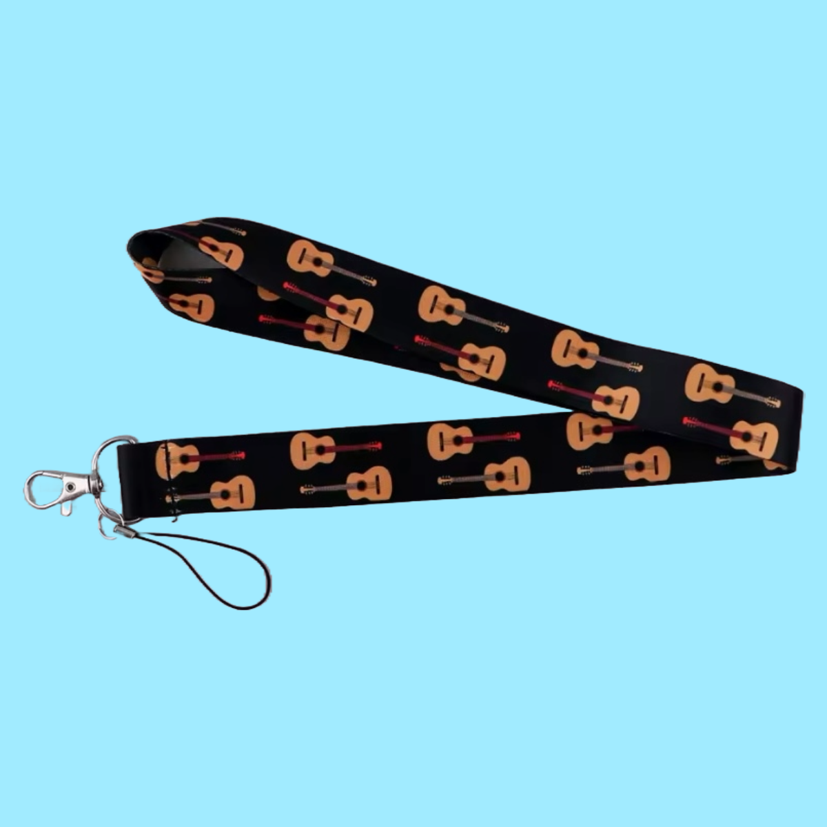 Elevate your everyday essentials with this Guitar themed Lanyard. This 45cm lanyard is not only stylish but also highly functional, making it the perfect accessory for keeping your keys, phone, ID, and more securely at hand.
