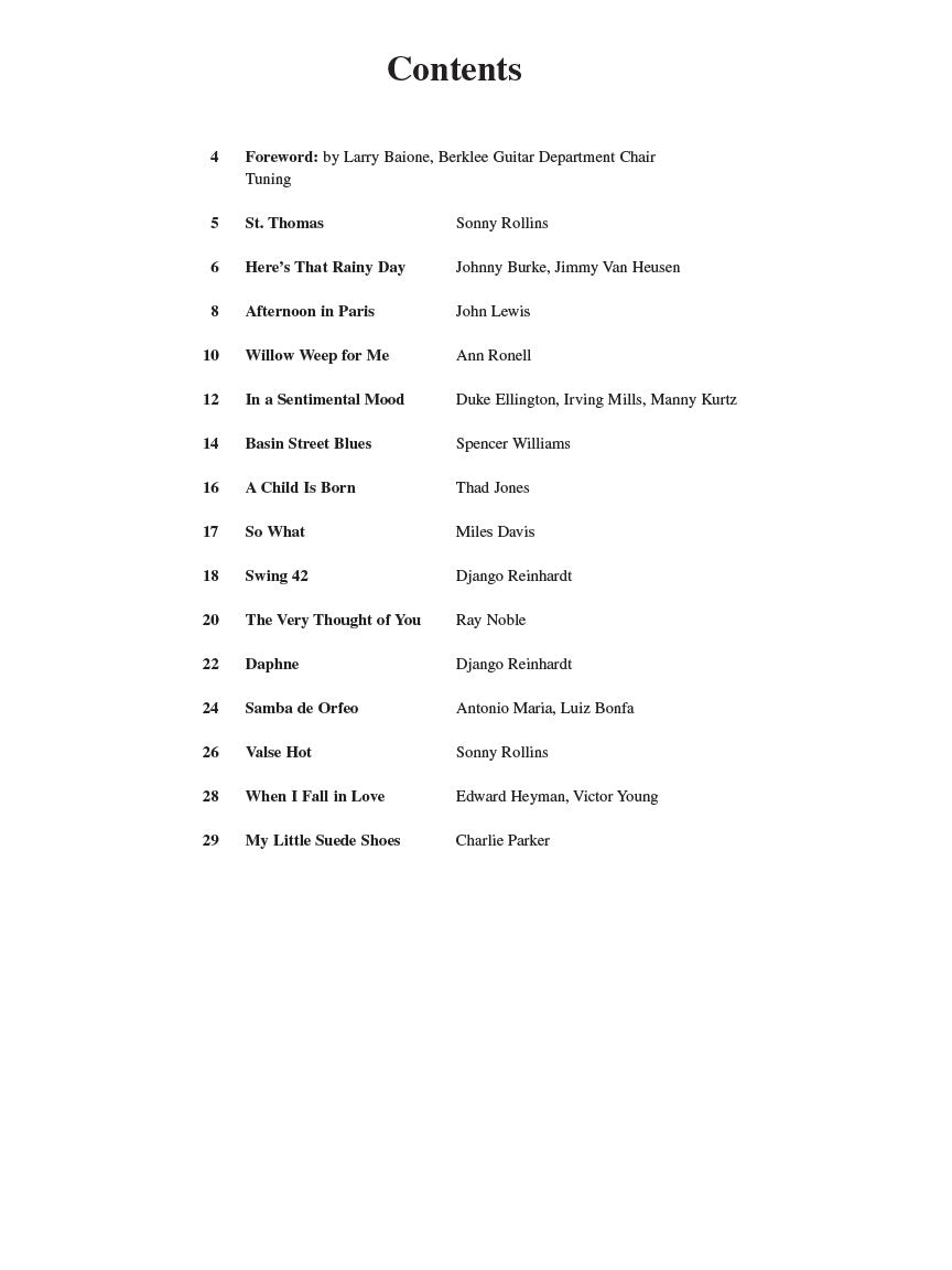Carefully overseen by Larry Baione, chair of Berklee's Guitar Department (and a former student of William Leavitt), these arrangements are crafted to Leavitt's time-proven approach, giving you the chance to apply what you learn to music by Miles Davis, Duke Ellington, Sonny Rollins, Django Reinhardt, and other jazz greats. The accompanying audio demonstrates all the tunes and offers play-along tracks for practicing the duets.