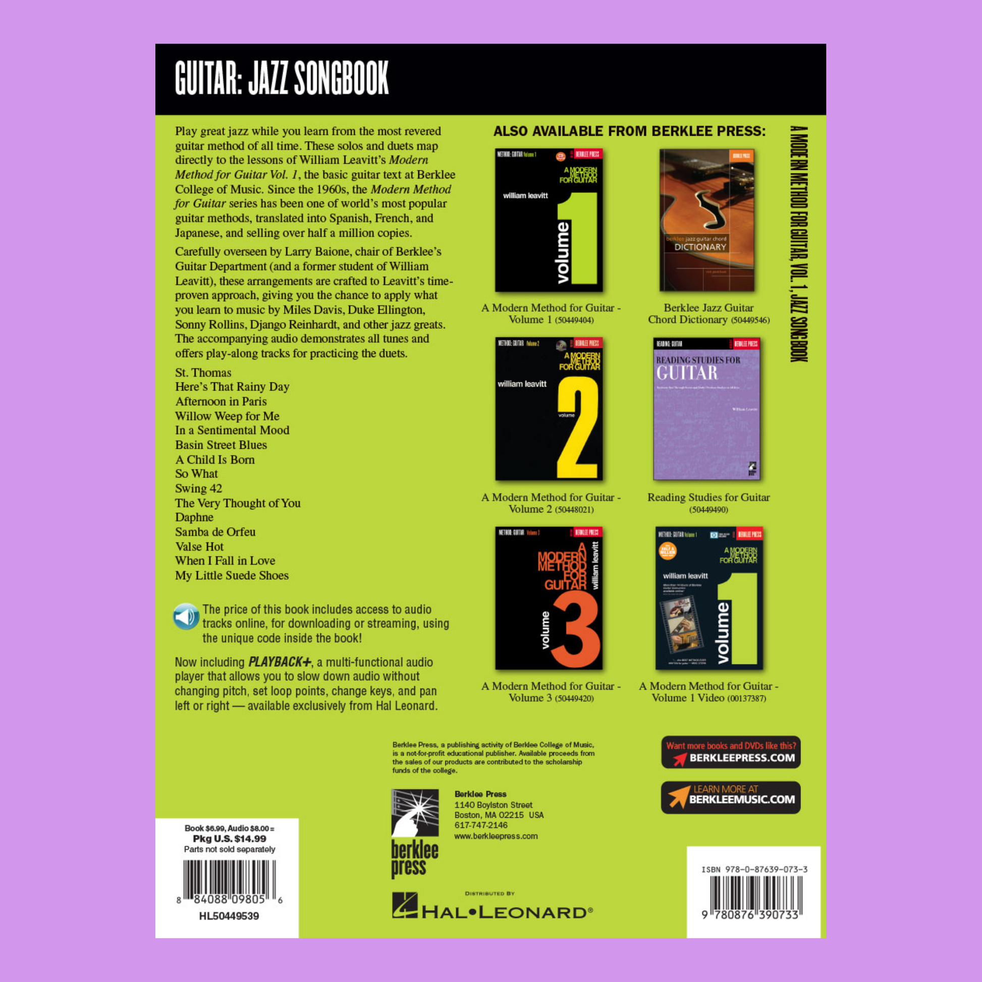 Play great jazz while you learn from this revered guitar method. These solos and duets map directly to the lessons in William Leavitt's Modern Method for Guitar, Volume 1, the basic guitar text at Berklee College of Music.