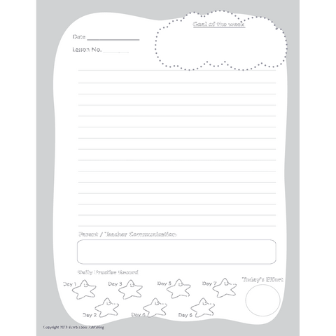 52 pages for Music Lessons the whole year round.  Diary contains an area for parent and teacher communication, an area for reward stickers, important dates, practice records and manuscript pages.