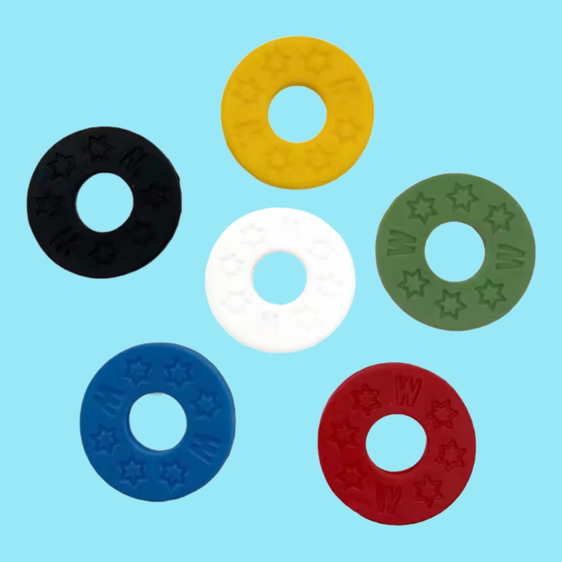 Featuring 2 red and 2 yellow blocks, they’re made from durable, flexible rubber that fits most strap buttons. Easily slip them on for a tight, reliable hold without altering your instrument—perfect for peace of mind during every performance.