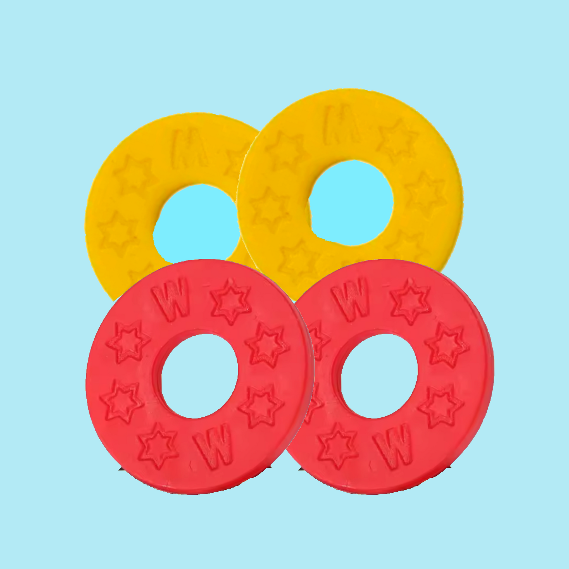 Musicworx Red & Yellow Strap Blocks (4 Pack) deliver simple, effective strap security for your guitar or bass.