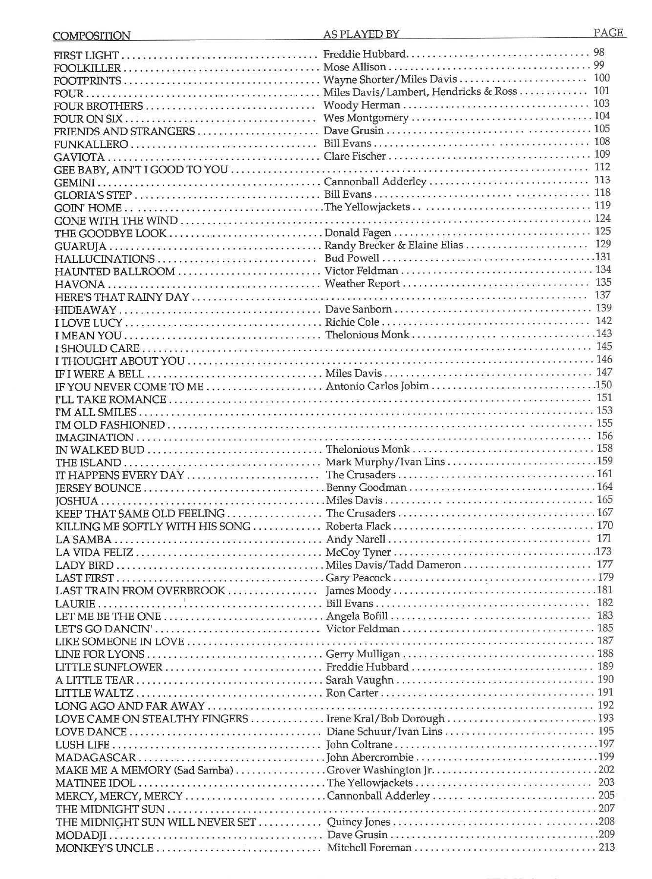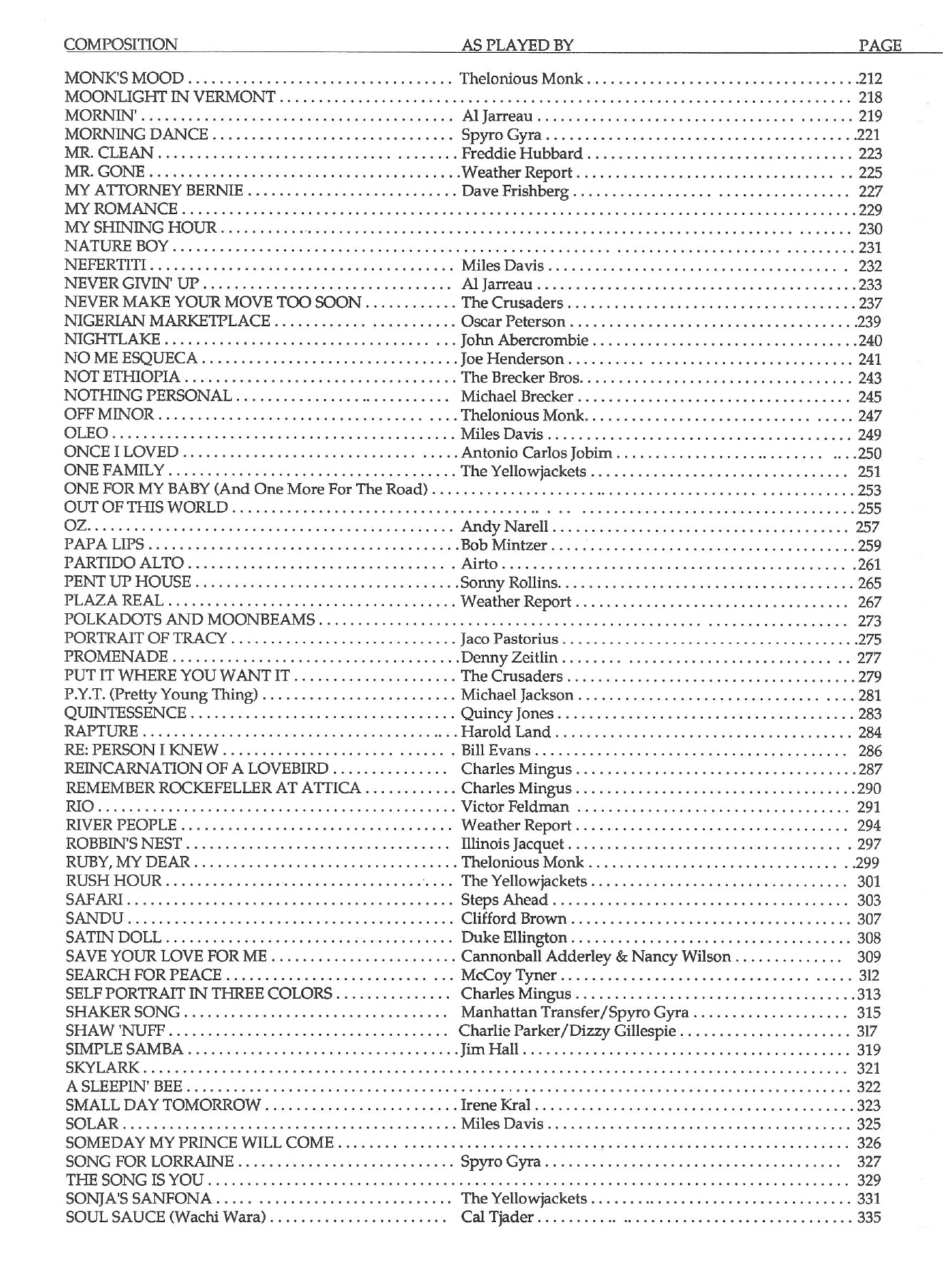 • All living composers have approved these charts; many of them are from the composer's own lead sheets.