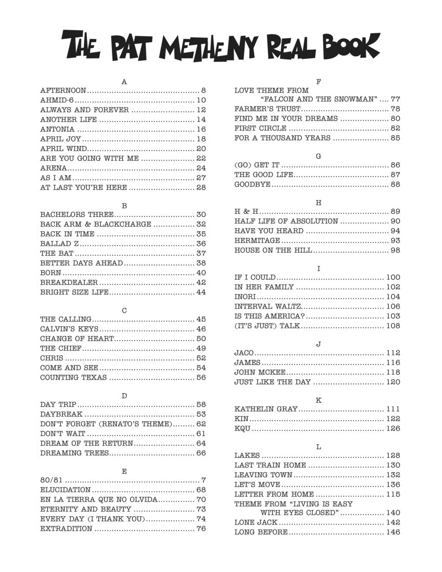 The Pat Metheny Real Book is a comprehensive collection of 147 tunes by one of jazz's most influential modern artists, arranged for C instruments in Real Book style. This 272-page spiral-bound book includes classics like April Joy, Bright Size Life, Last Train Home, Question and Answer, The Red One, and many more. Ideal for jazz musicians looking to explore Metheny's groundbreaking compositions, this edition is perfect for performances, practice, and in-depth study of a jazz icon’s work.