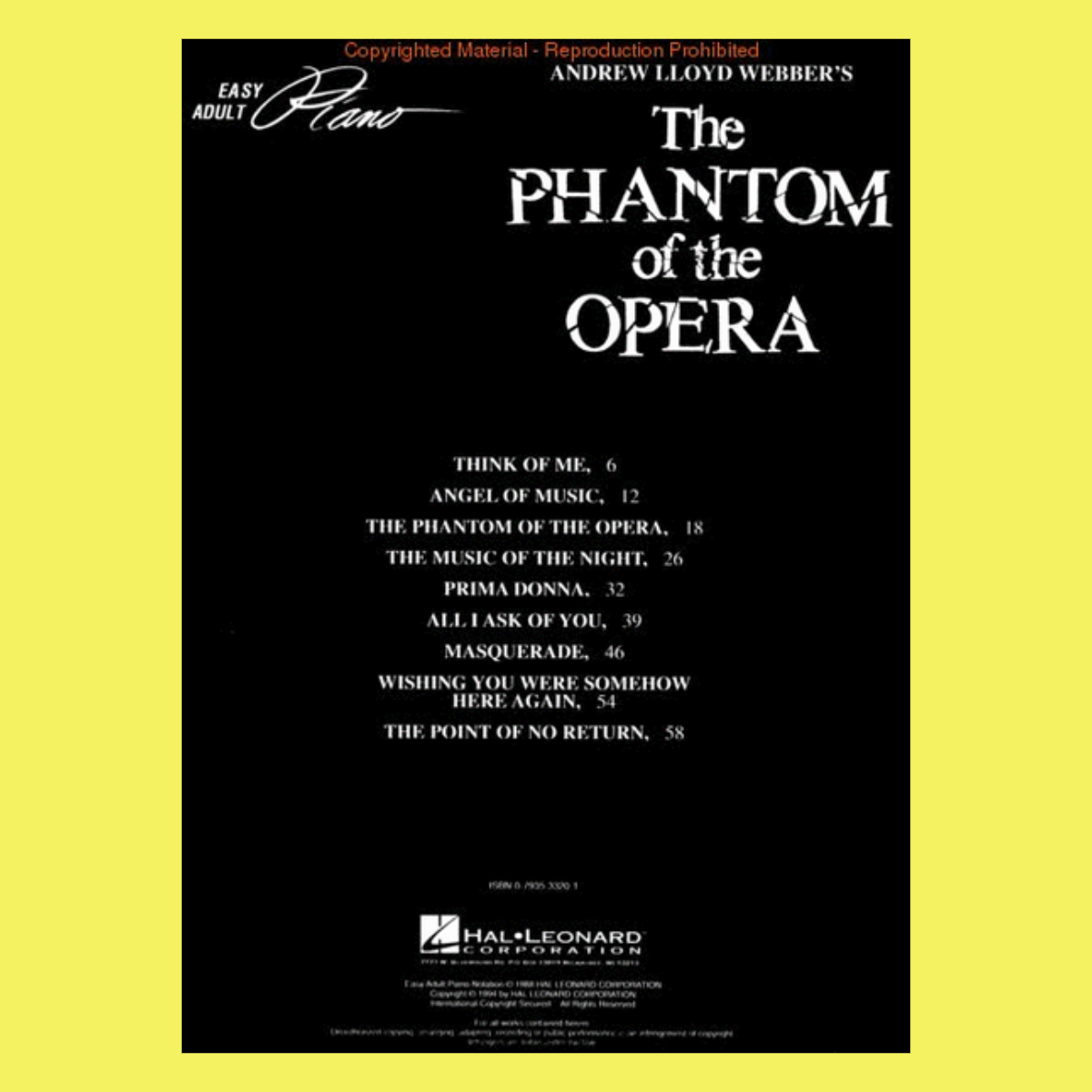 Titles include: All I Ask of You • Angel of Music • Masquerade • The Music of the Night • The Phantom of the Opera • The Point of No Return • Prima Donna • Think of Me • Wishing You Were Somehow Here Again. 64 pages.