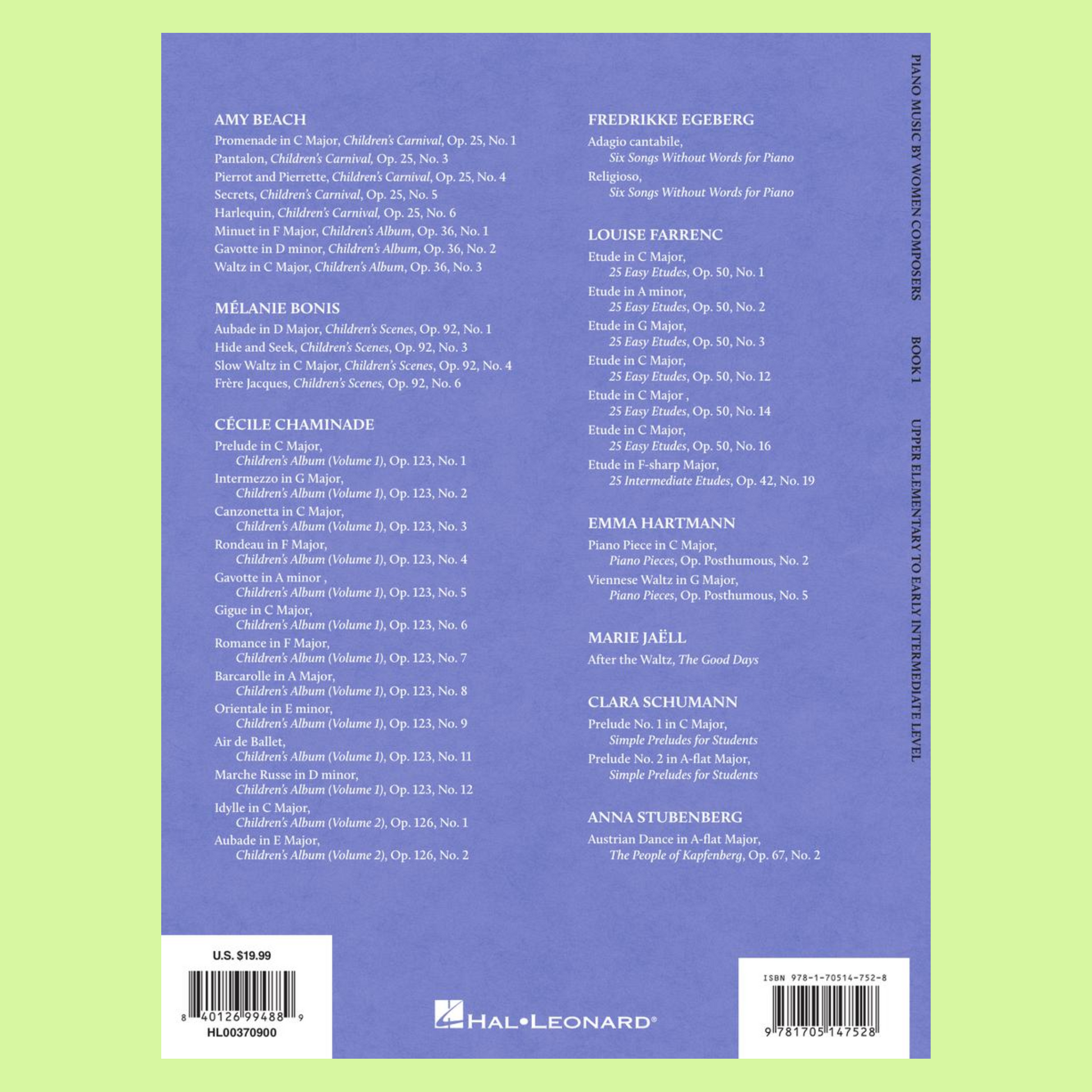 When editor Immanuela Gruenberg set out to compile these collections, she searched for the following: beautiful, interesting compositions that students will love playing, teachers love teaching, and audiences will appreciate while showcasing as many female composers as possible.