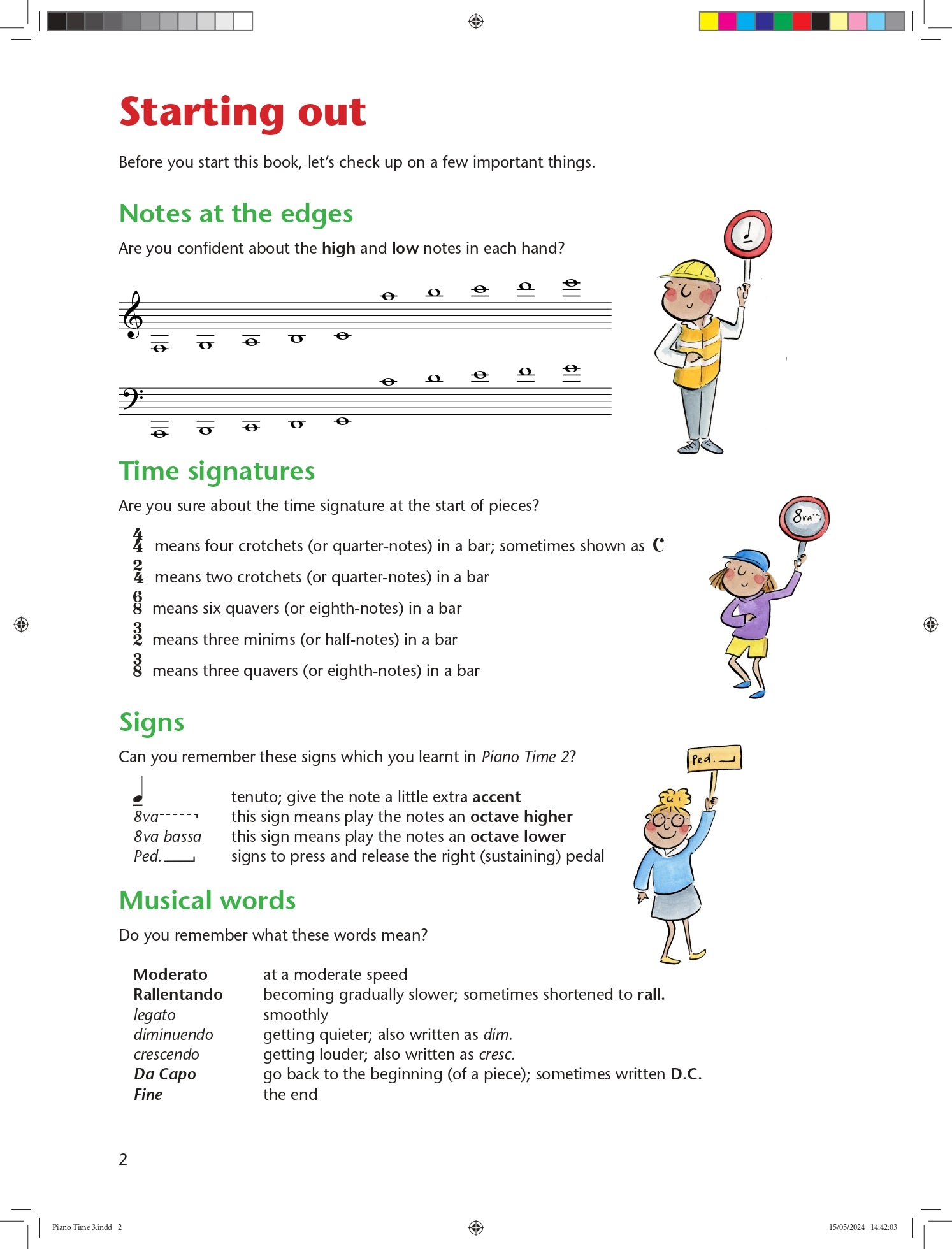Piano Time 3 builds on the techniques acquired in Piano Time 1 and 2, introducing new keys, semiquavers in various rhythmic patterns, triplets, and a variety of finger-twister exercises. It also explores the Alberti bass, the melodic minor scale, and scales with hands together, as well as showing players how to plan their own concert. With a host of attractive pieces in all styles, a gradual pace to suit all players, and appealing full-colour illustrations, this is a superb tutor book for all young pianists.