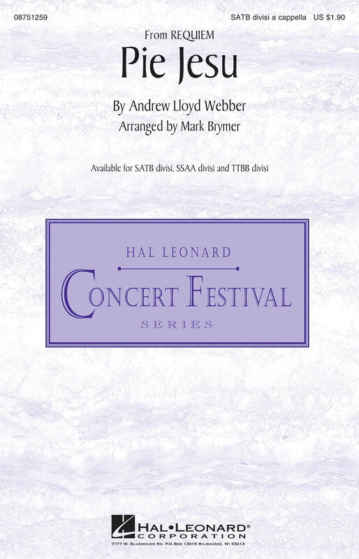 Pie Jesu Satb is a music book product that features soprano and boy soprano solos with choral ensemble. It is a hauntingly beautiful work that has been the most popularized section of Lloyd Webber's Requiem. The music book is available in SATB format and has an approximate performance time of 4:00.
