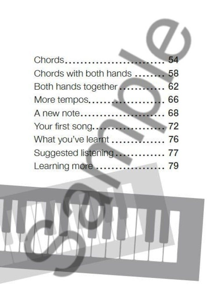 Despite its compact size, the playbook covers a wide range of topics, starting with the basics of physically playing the keyboard, including finger placement and hand positions. As you progress through the guide, you'll learn about notes, chords, and even play your first song, providing a tangible sense of accomplishment.
