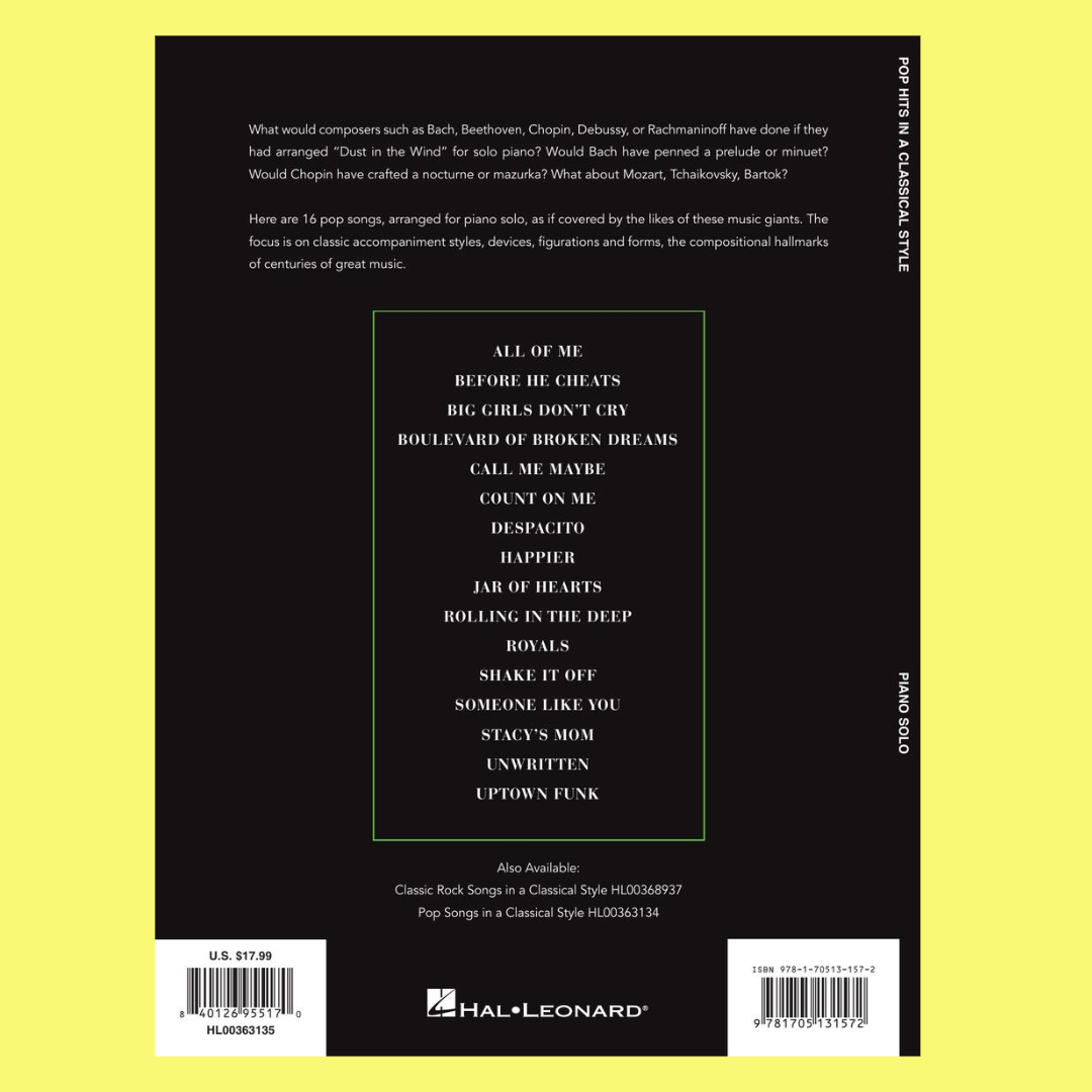 Pop Hits In A Classical Style For Piano Solo Book