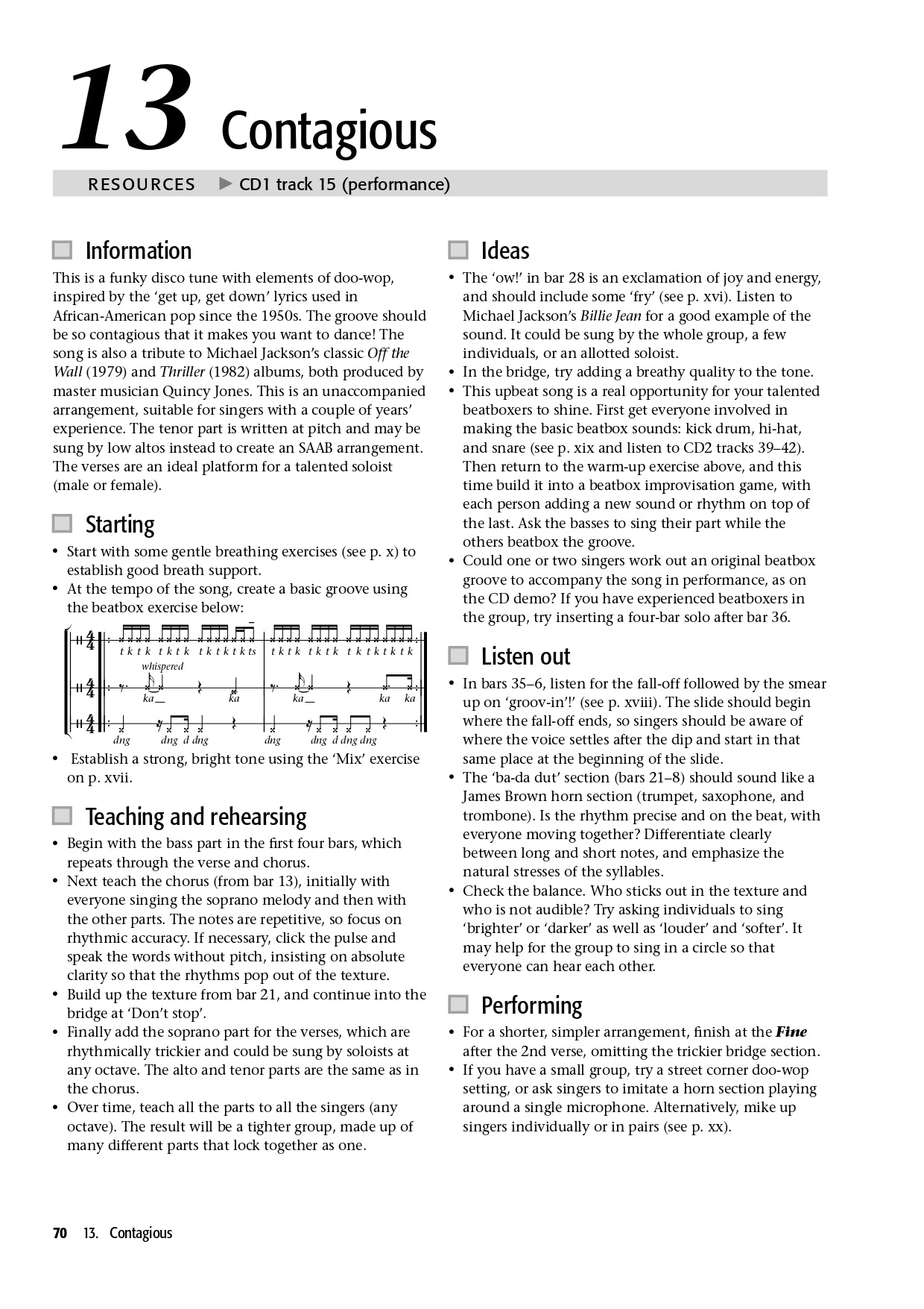 - A complete rehearsal plan for each song, including warm-ups and guidance on vocal techniques for singing popular styles and beatboxing