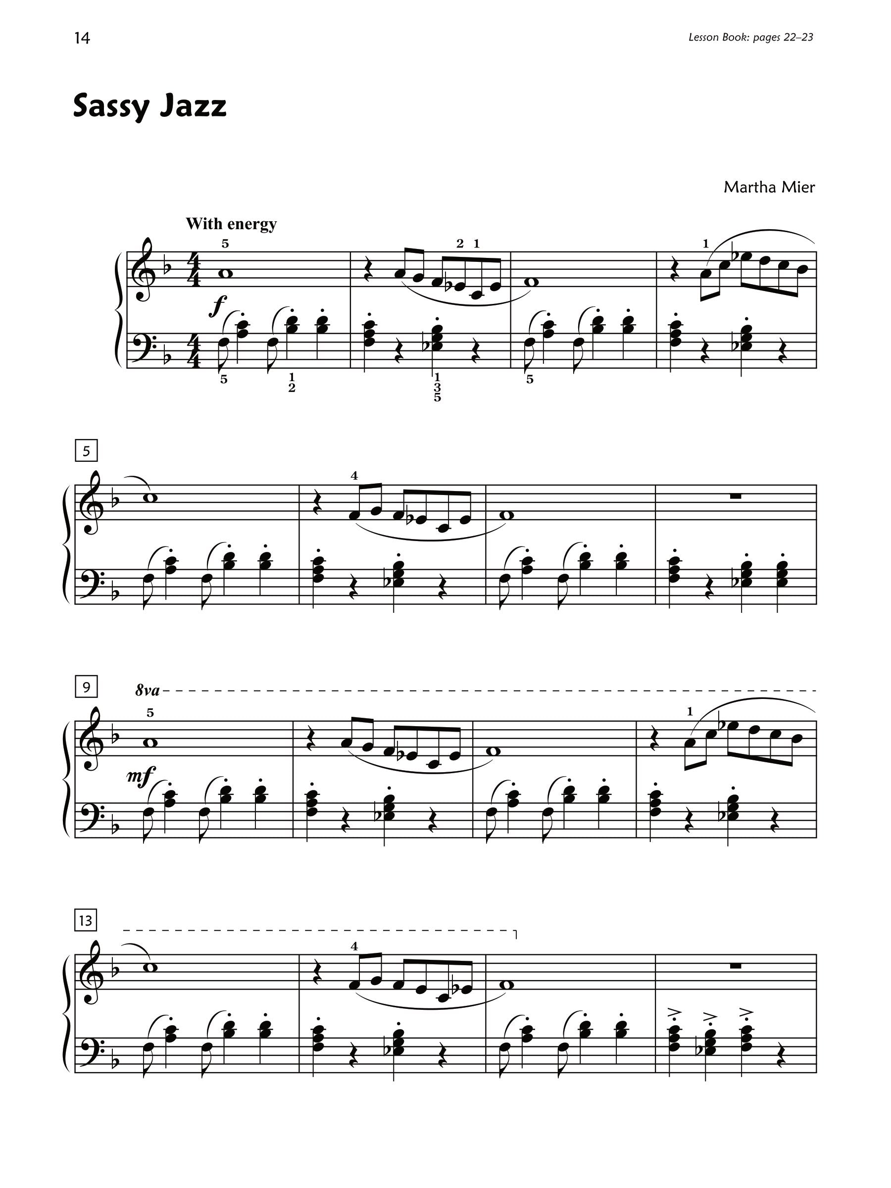 Premier Piano Course, Jazz, Rags and Blues 3 includes original pieces that reinforce concepts introduced in Lesson Book 3. Popular composer Martha Mier has composed all new music in a variety of styles, including ragtime, boogie, and jazz. The pieces in the book correlate page by page with the materials in Lesson Book 3. 32 pages.