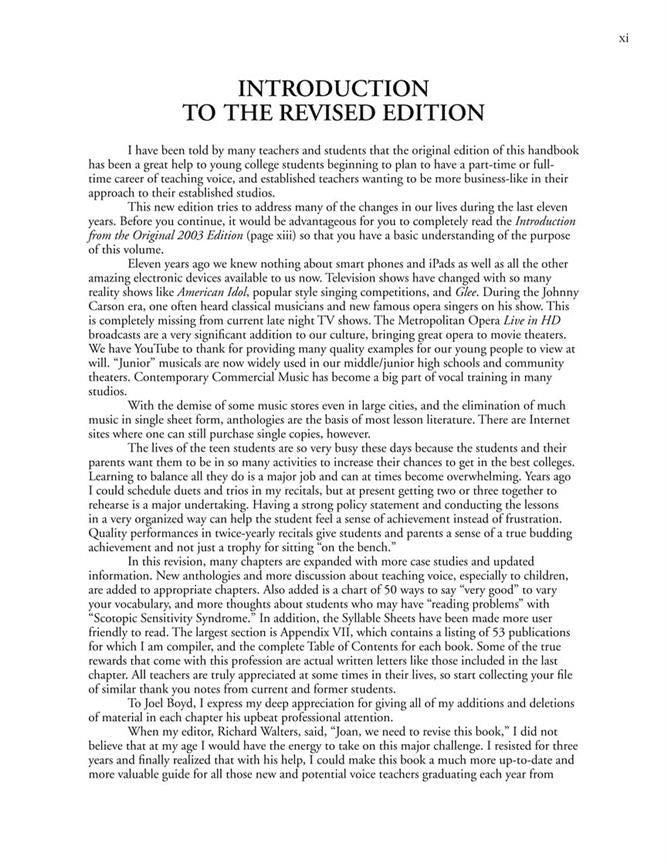 Written by nationally recognised expert Joan Boytim, The Private Voice Studio Handbook is an invaluable resource for anyone teaching voice privately. Drawing from her extensive experience in running a successful private voice studio and leading thousands of teachers through clinics and workshops, Boytim offers practical, real-world advice for voice instructors of all levels.