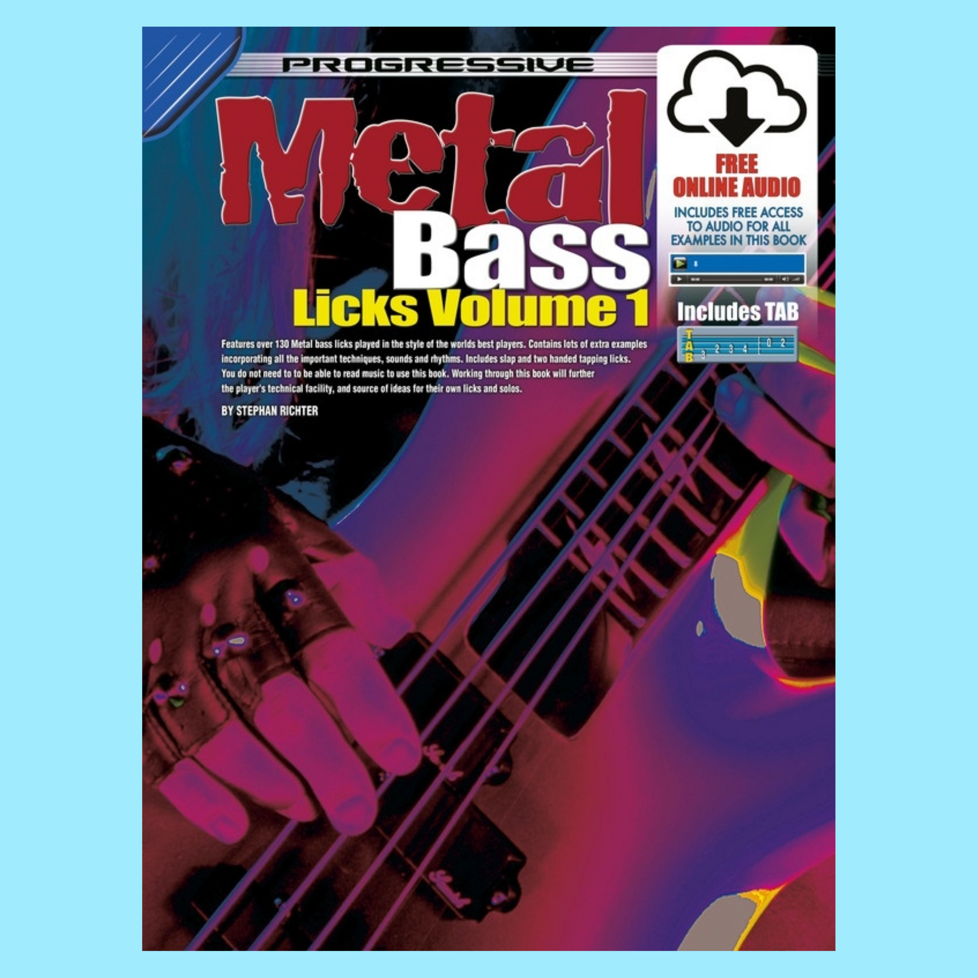Dive into the electrifying world of heavy metal bass with 'Progressive Heavy Metal Bass Licks Volume 1 Book and Online Audio' – your ultimate guide to mastering the iconic techniques and sounds of the genre!