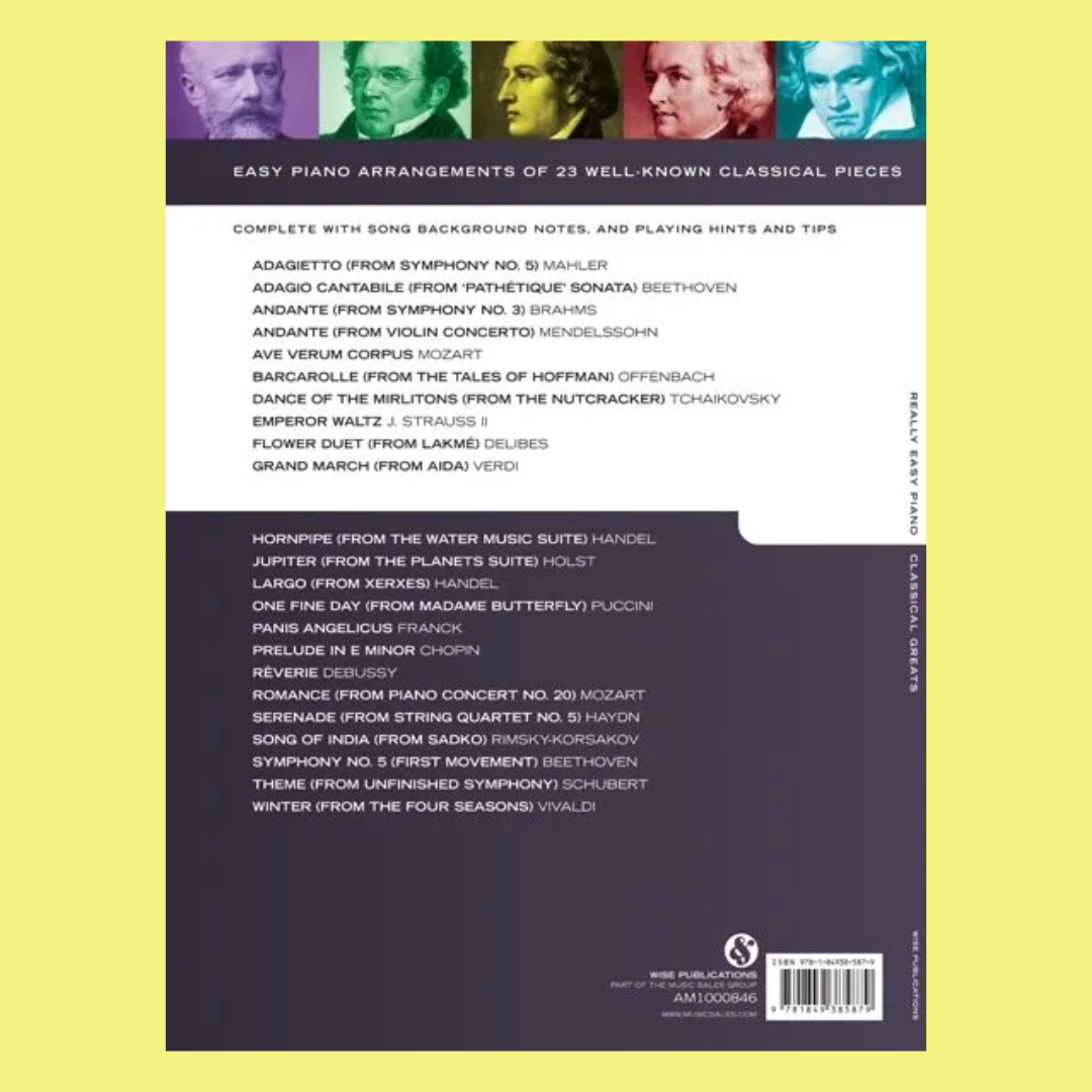 This book offers easy piano arrangements of 24 well-known classical pieces, perfect for beginner to intermediate players. Each piece comes with background notes and helpful playing hints and tips. Enjoy classics like Prelude in E Minor (Chopin), Ave Verum Corpus (Mozart), Flower Duet from Lakme (Delibes), and many more. A great way to explore the world of classical music on the piano. 48 pages.