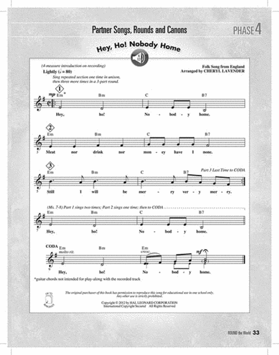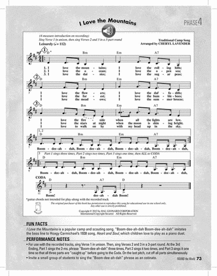 Round the World is also a multicultural collection so that students can experience the music of their world brothers and sisters, and have a greater understanding of their cultural stories and traditions.