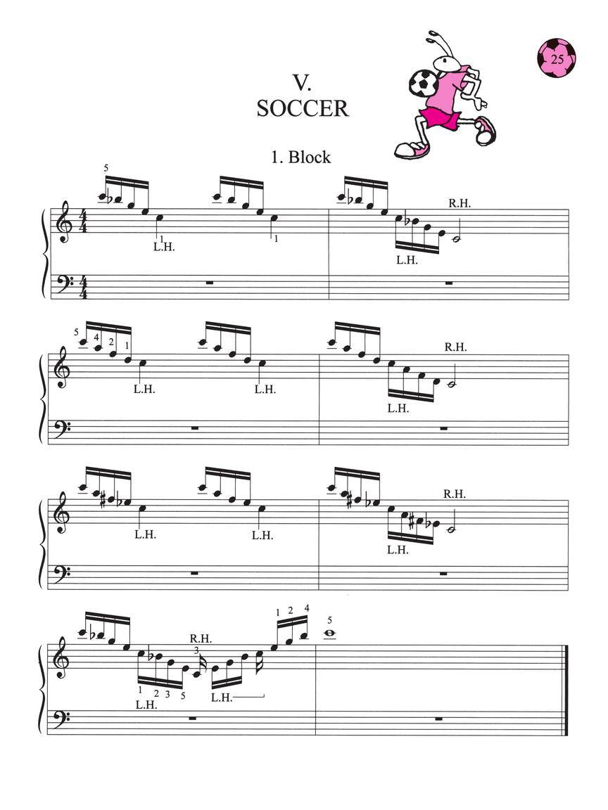 "Sportacular Piano Warm-Ups Book 4" is a creative and engaging collection designed specifically for elementary level piano students with a passion for sports. This 32-page book offers a series of progressive finger "workouts" that not only build technical skills essential for performance but also make the learning process fun and relatable by drawing parallels between musical exercises and sports activities.
