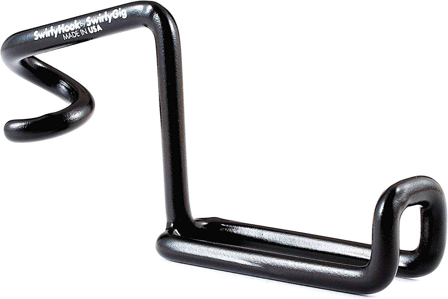 The Swirlyhook can also be used for bird feeders, shelving, or any other vertical tubing. Made in the USA, this accessory holder is built to last and will be a valuable addition to any musician's gear collection.
