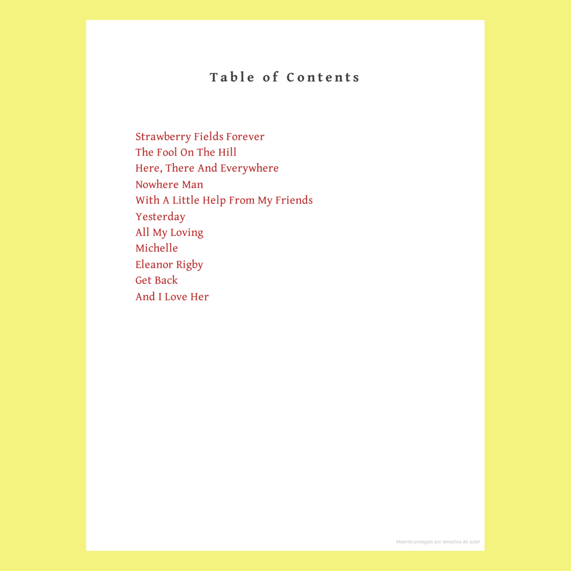 And other favourites that have been carefully selected and arranged to capture the essence of both The Beatles' original compositions and the vibrant, dynamic feel of jazz. This blend of iconic pop melodies with intricate jazz piano stylings offers pianists an opportunity to explore these popular songs in a new and artistically challenging way.