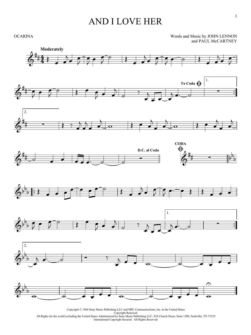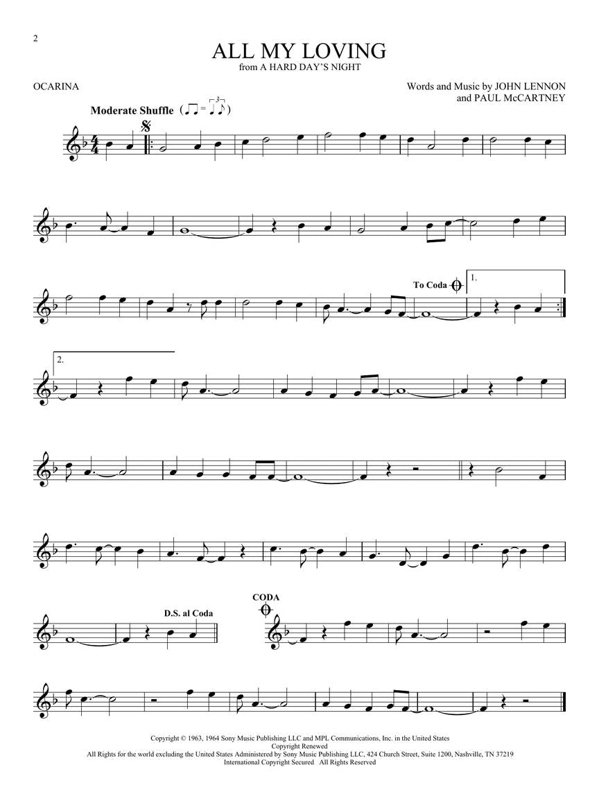 Songs featured in this book include classics like "And I Love Her," "Blackbird," "Can't Buy Me Love," and "Eleanor Rigby." It also covers sunny tracks such as "Here Comes the Sun," beloved anthems like "Hey Jude," and nostalgic hits including "Yesterday." Whether you're a seasoned ocarina player or a newcomer eager to engage with music-making, this compilation offers a fun and accessible way to enjoy The Beatles' timeless songs. Each piece is arranged to suit the ocarina’s unique tonal qualities, making it a delightful addition to any musician's collection.