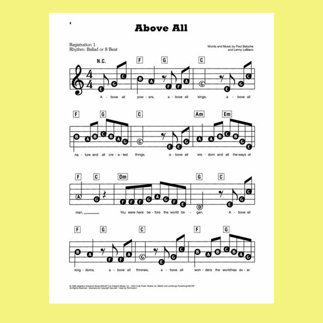 With songs like "Above All," "Awesome God," "Come, Now Is the Time to Worship," and "Shout to the Lord," this songbook is filled with timeless classics that have inspired countless hearts and lifted spirits in worship. Whether you're a beginner or an experienced player, the simplified arrangements in this book make it accessible for all.