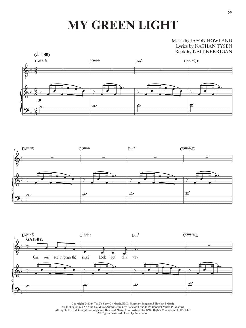 This vocal selections songbook captures the music from The Great Gatsby - A New Musical, inspired by the classic novel by The Great Gatsby by F. Scott Fitzgerald. Featuring a jazz and pop-influenced score by Jason Howland and Nathan Tysen, with a book by Kait Kerrigan, the musical reimagines the Roaring Twenties with contemporary energy and theatrical flair.