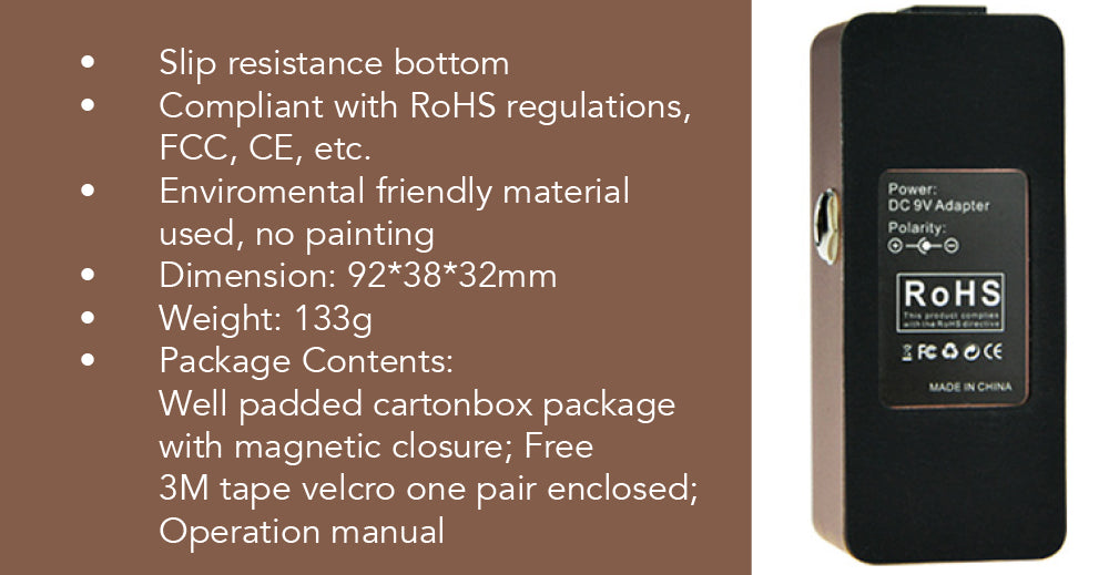 • Package contents: Pedal, user manual, 3M hook and loop tape