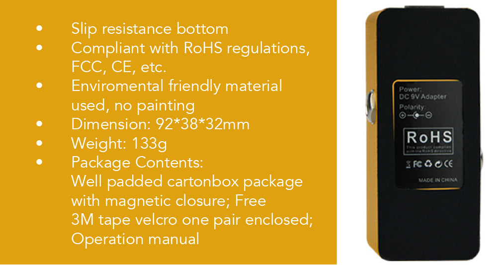 • Package contents: Pedal, user manual, 3M hook and loop tape