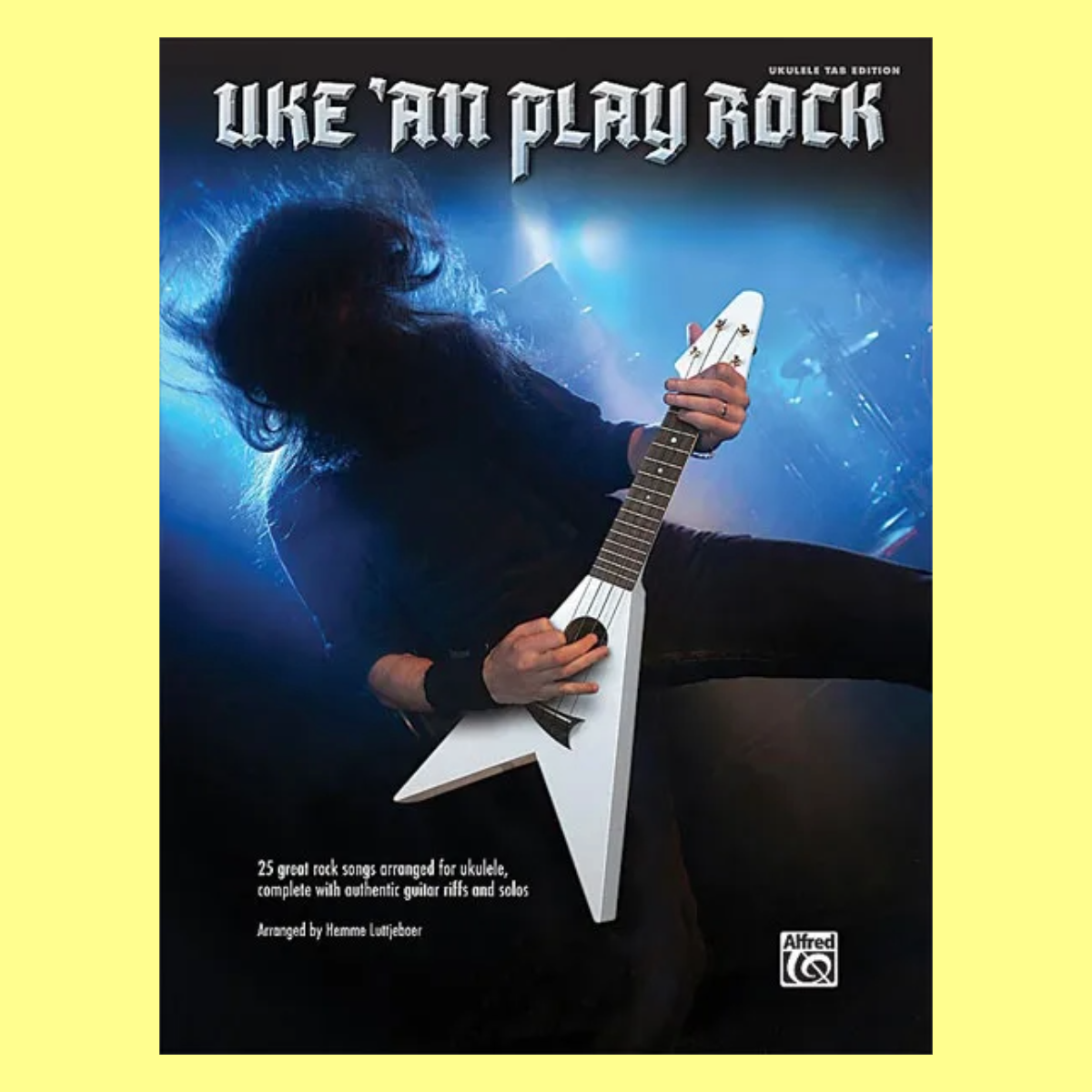 The Uke An Play Rock Tab Songbook features 25 iconic rock songs, from classic to modern rock, all arranged for ukulele with authentic guitar riffs and solos. This 108-page book includes ukulele tabs for each song, allowing you to play the guitar parts on your uke. Perfect for rock lovers and ukulele players looking to add a new dimension to their playing, this collection brings the energy of rock music to the ukulele.
