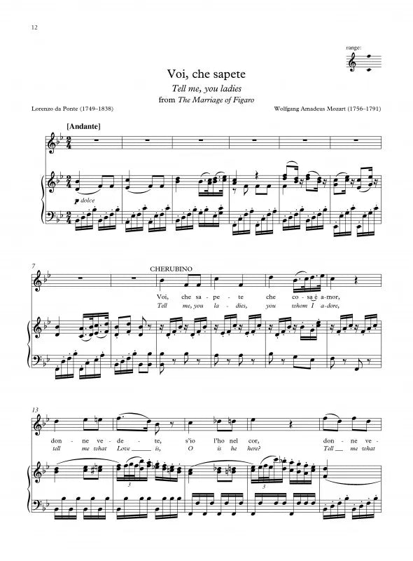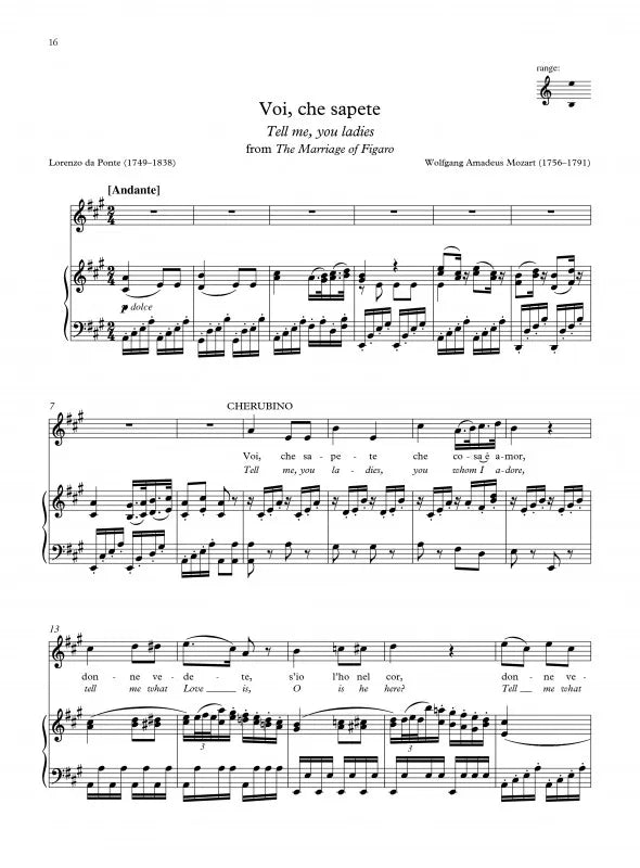Wolfgang Amadeus Mozart - Voi che sapete from Marriage of Figaro - High/Med/Low Voice Book 📚
