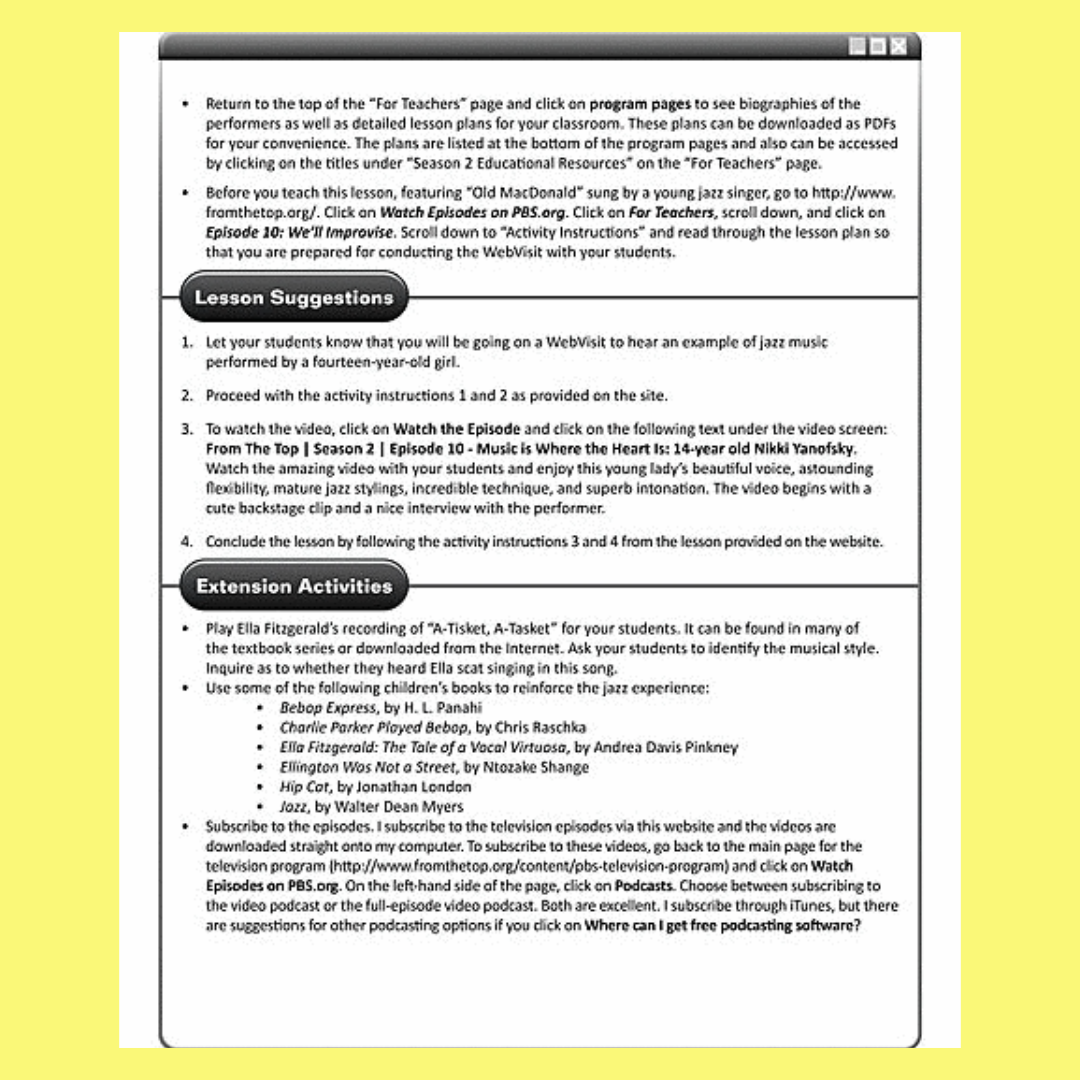 This resource offers a diverse range of music lessons for students in grades 1 to 6, centered around music websites. Created by a team of expert educators, including Artie Almeida and Patricia Bourne, these lessons provide a comprehensive exploration of music appreciation.